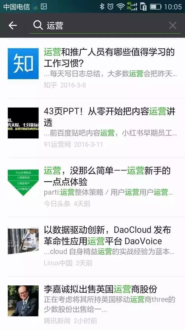 如今,通过手机客户端的微信搜索引擎不仅能搜索到站内的文章、公众号以及朋友圈分享的内容,也能搜索到今日头条、一点资讯、搜狐、知乎、博客、58同城等等站外平台的信息资讯。这对于广大的自媒体人及中小企业来说,也无疑是一个巨大的机会。